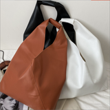 フェイクレザーのトライアングルバッグ。 どんなコーデにも合う シンプルなデザイン。 軽くてたくさん収納できるので、 お出掛けはもちろん、 エコバッグやサブバッグとしても◎