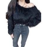 ショートファーオフショルセーター